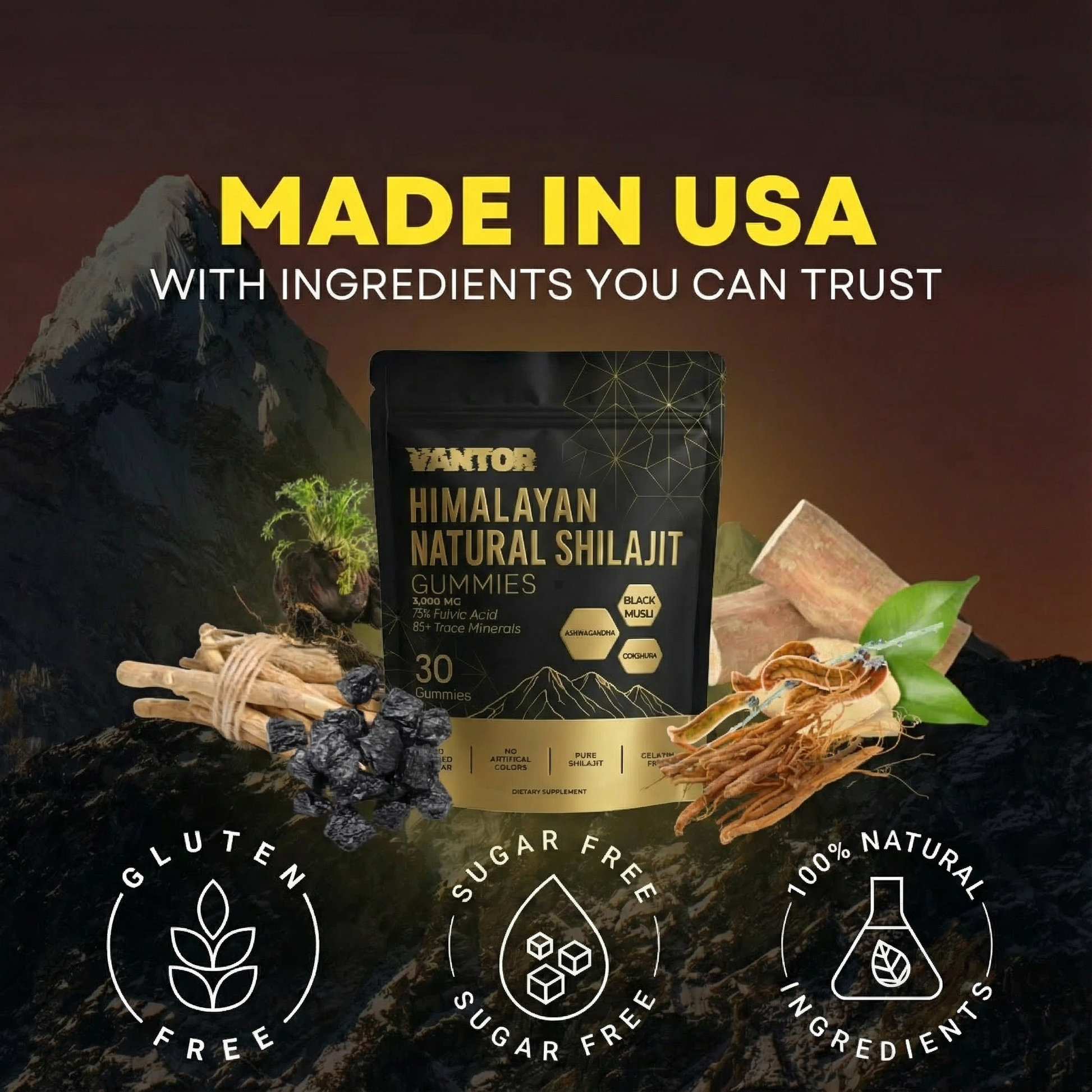 Vantor Labs™ Pure Shilajit Gummies are a fast-absorbing, lab-tested performance formula designed to support stronger blood flow, healthy testosterone levels, and enhanced sexual vitality.